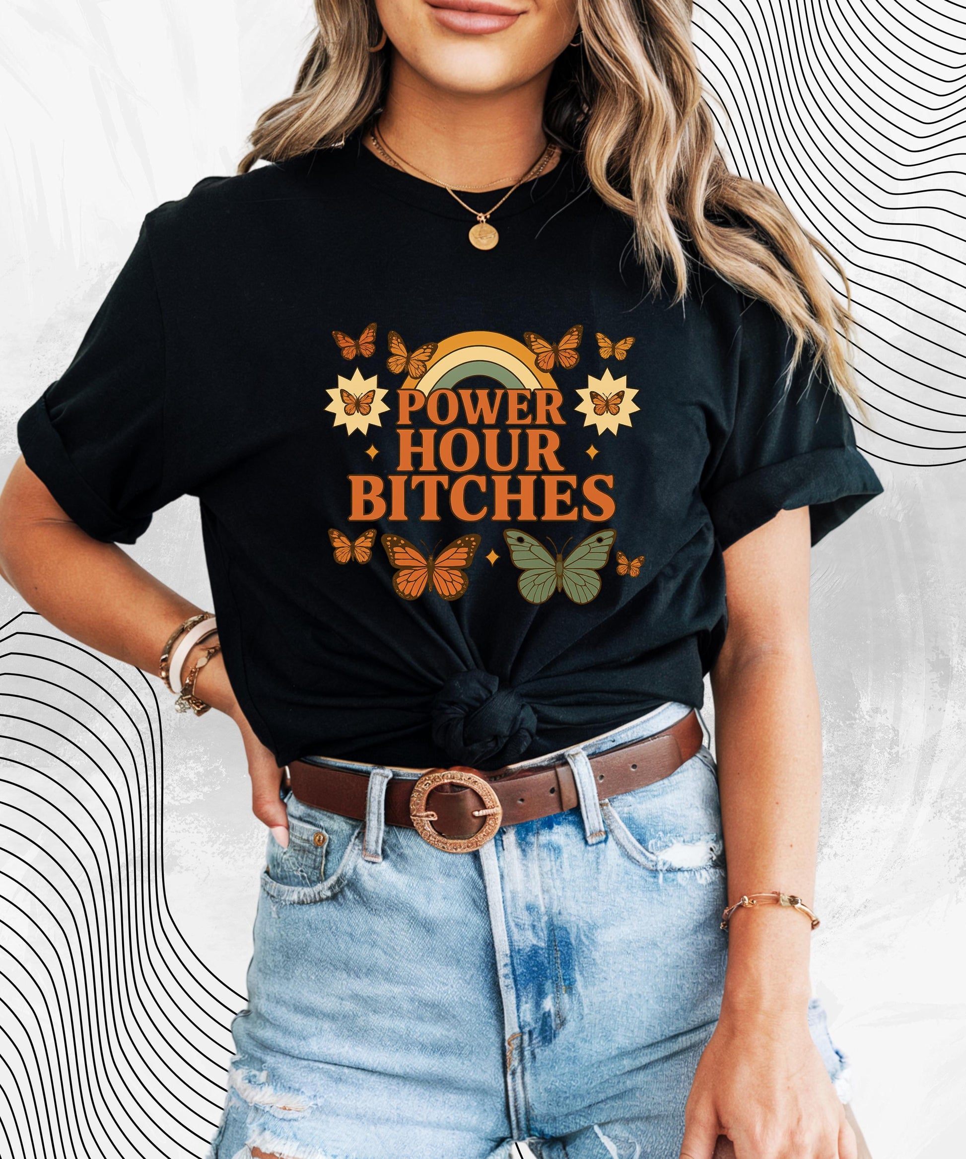 Power Hour TShirt – Funny Party T-Shirt for Women, Power Hour Bitches Tee, Drinking Game Tee, Girls Night Out Shirt, College Party